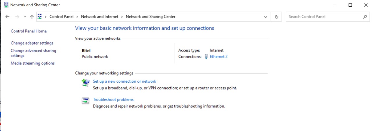 Now open your control panel, select Network and Sharing Center